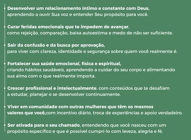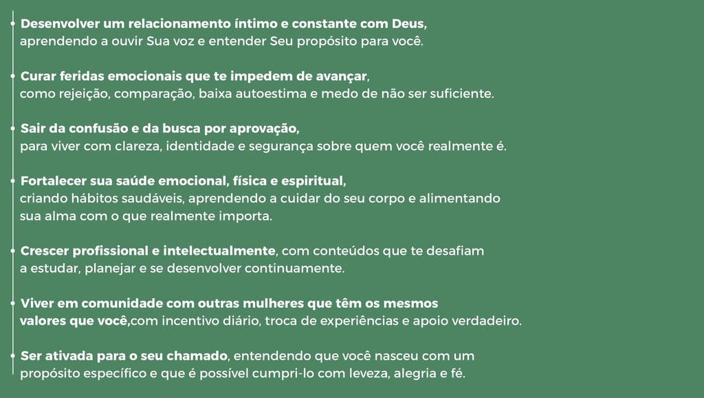 Uma comunidade de meninas e mulheres dedicadas ao desenvolvimento integral e ao cumprimento do desenho original de Deus em suas vidas.